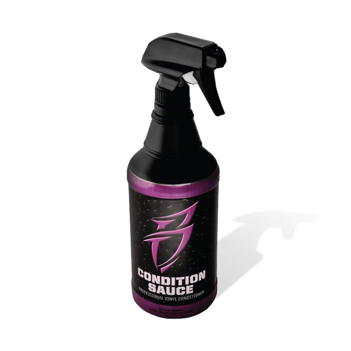 The sun is powerful and Condition Sauce takes protecting your interior to another level with its moisturizing effectiveness, strong UV protection and stunning non-greasy "just detailed" look. Itβs OK to brag about your interior β we encourage it! Condition Sauce is a bio-degradable, safe, soft water based conditioner that provides 100% UV protection for vinyl, leather, and rubber surfaces while moisturizing these surfaces to reduce cracking and wear. It rejuvenates slightly damaged vinyl and leather. Simple spray-on, wipe-off application. Recommended for application once per month.
