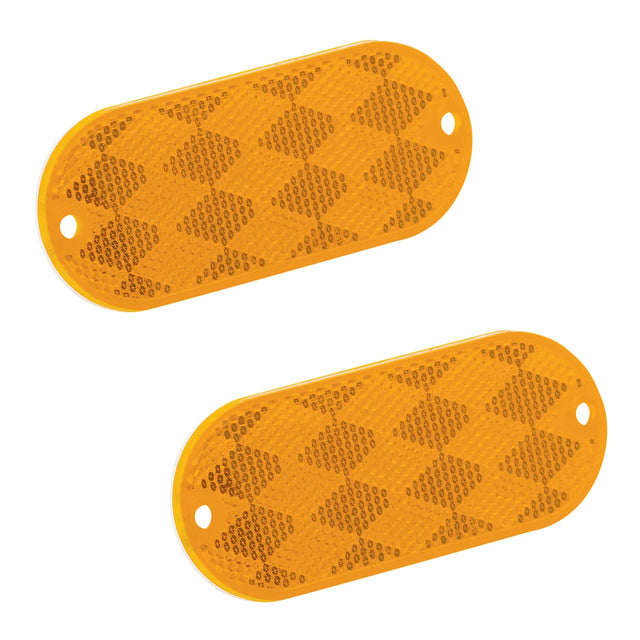 The Bargman Oblong Adhesive Reflector is a Class "A" acrylic reflector that is hermetically sealed and contains two mounting holes. Adhesive fiber back. Dimensions measures 4-3/8" x 1-7/8".