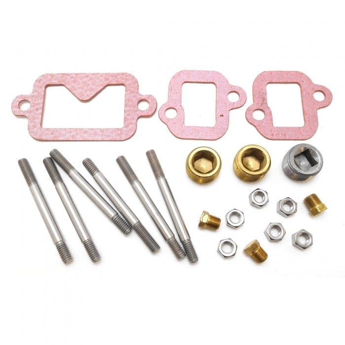 - Includes exhaust manifold to head gaskets, stainless steel mounting studs, and manifold plugs to mount 1 manifold