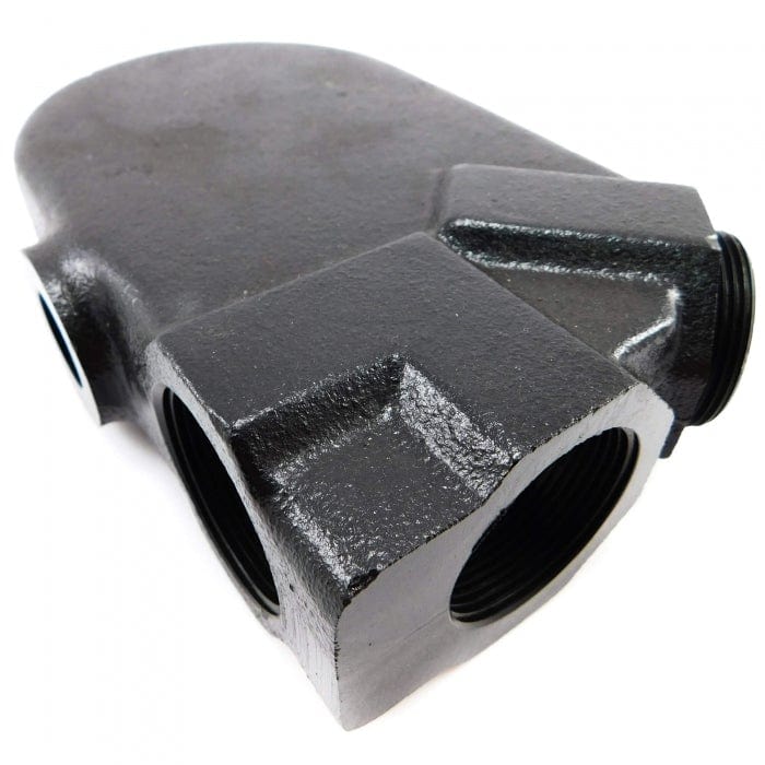 Cast iron exhaust riser with 1 1/2 NPT connections directly replaces Universal 200372 & 299945.- Barr Universal replacement exhaust riser