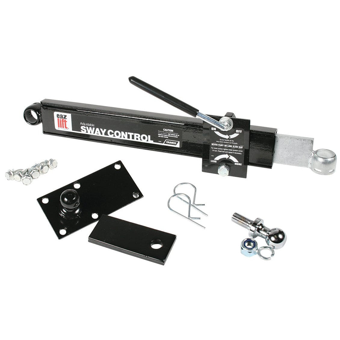 Eaz-Lift Sway Controls are superior to cam action sway controls because they do not create noise problems and do not reduce road clearance. Eaz-Lift sway controls are easily released when road conditions do not warrant their use, unlike cam action type sway controls that depend upon hitch weight to operate and cannot be released on icy and oily road conditions where straight line action would possibly impair driving control. Also, Eaz-Lift sway controls do not lose sway control ability in turns. Comes complete with slide bar, crank handle, spring clips, friction plate, ball tongue plate, self-tapping screws and chrome tongue ball.