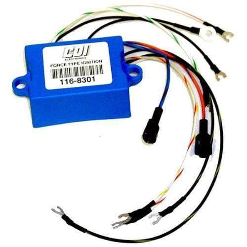 CDI Electronics 116-8301 Chrysler/Force/Sears/Gamefinder Ignition Pack fits the following engines: 1988-1992 50 HP (2 cylinder), 1989-1991 85 and 90 HP (3 cylinder), 1988-1991 120 and 125 HP (4 cylinder), 1989-1992 150 HP (5 cylinder). Replaces part numbers: 685301-2, 658301, 658301-2, F658301-2, 888788, 300-F685301-2, 300-F658301-2, 300-888788. Designed for use in a marine environment.
