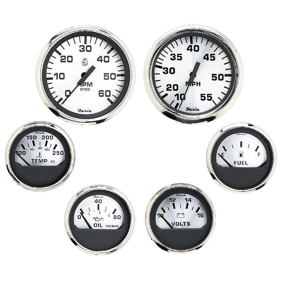 Faria Spun Silver Speed/Tach/Volt/Fuel/Water Temperature/Oil #KTF0184
