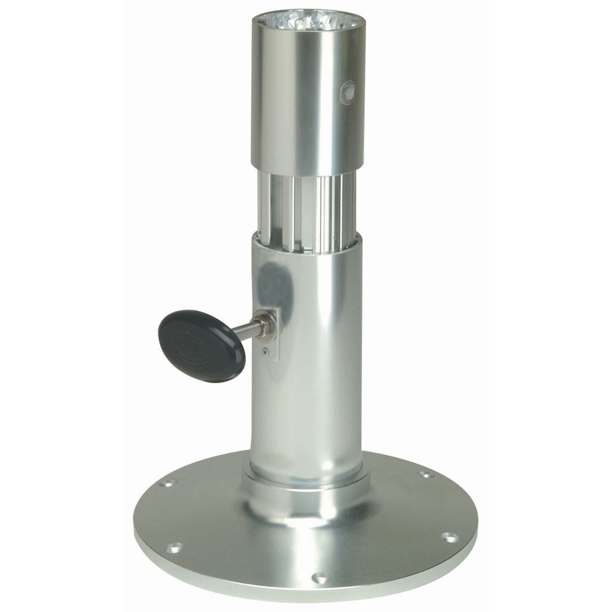 The adjustable height standard friction lock pedestal features a smooth finish. Seat raises or lowers and locks at desired height. Anodized protective finish helps prevent saltwater corrosion and weathering. Accepts Garelick Seat Slides: 22000, 22001, 75080, 75081, 75082, 75083 and 75091. Accepts Garelick Swivels: 99023 and 99036.