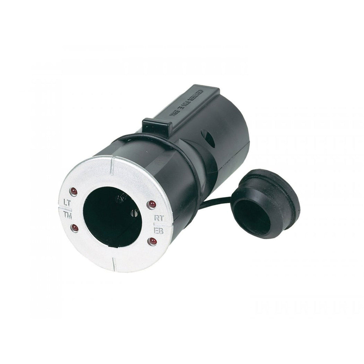 The 47525 LED Test 7-Blade to 6-Pole Round adapter allows you to adapt down from a 7-Blade connector to a 6-Pole round trailer side connector without having to rewire the truck or trailer. LED test lights will illuminate when the vehicle tow function is active letting you know that everything is working correctly. This adapter also allows you to open it and change the pin locations for auxiliary and electric brakes making it the perfect adapter for either 6-Pole Round wiring code. An included dust cover adds an extra layer of weatherproofing for long lasting performance.