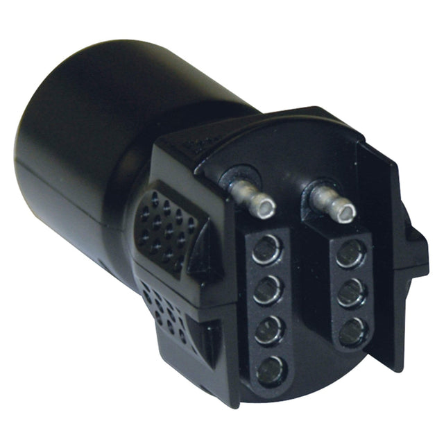 Quickly convert your 7 Blade vehicle side connector to a 4 Flat or 5 Flat trailer end connector. This patented Multi-Tow adapter includes two dust covers for both the 4 Flat and 5 Flat to help prevent corrosion. Provides multiple towing options from one connector. Impact and corrosion resistant. Easy grip design. Includes 90 day warranty from date of original purchase.