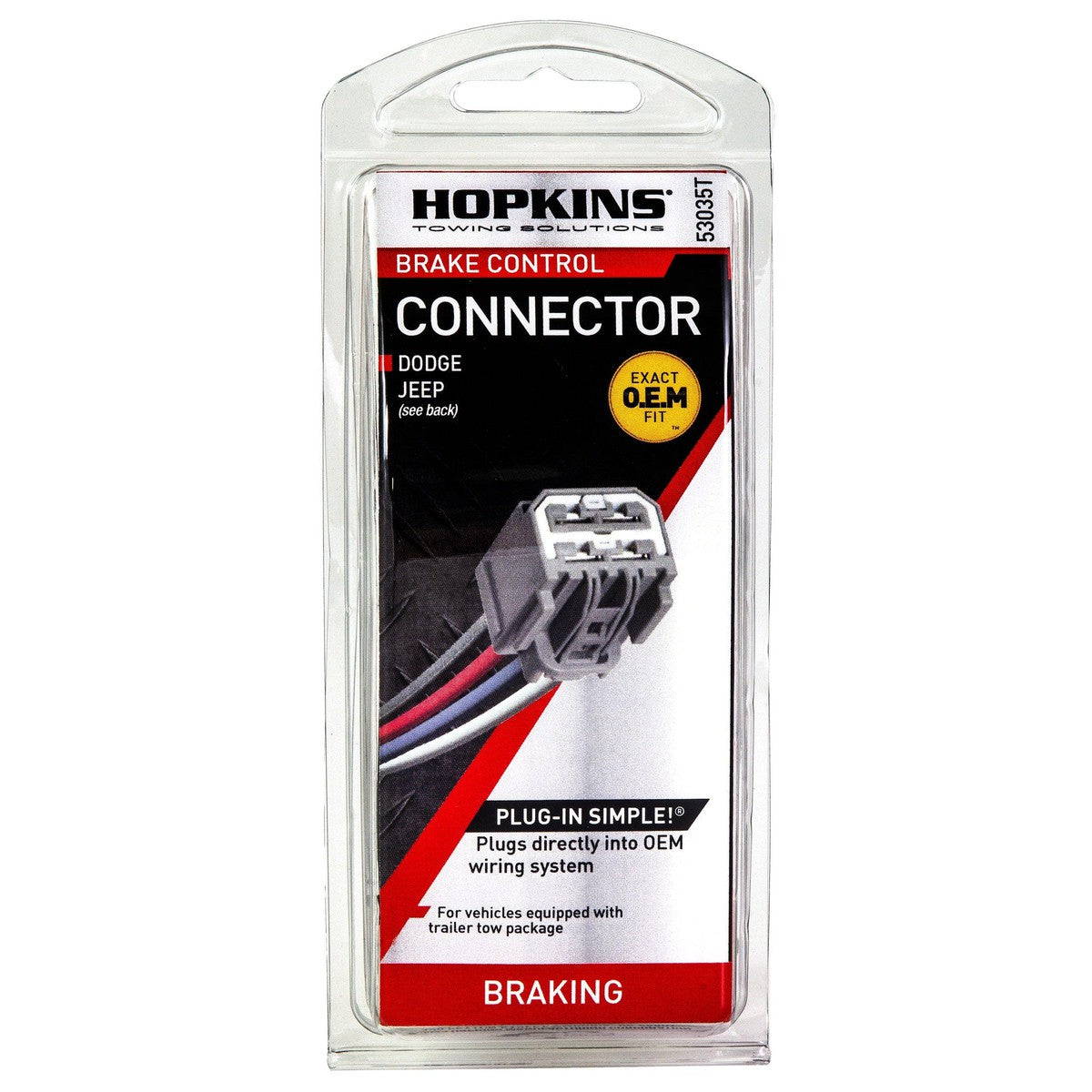 Reduce your brake control installation time to minutes! Many of today's tow vehicles come with an O.E.M. connector harness under the dash. This harness simply plugs into the tow vehicle and then plugs into the Hopkins brake control to complete the install.