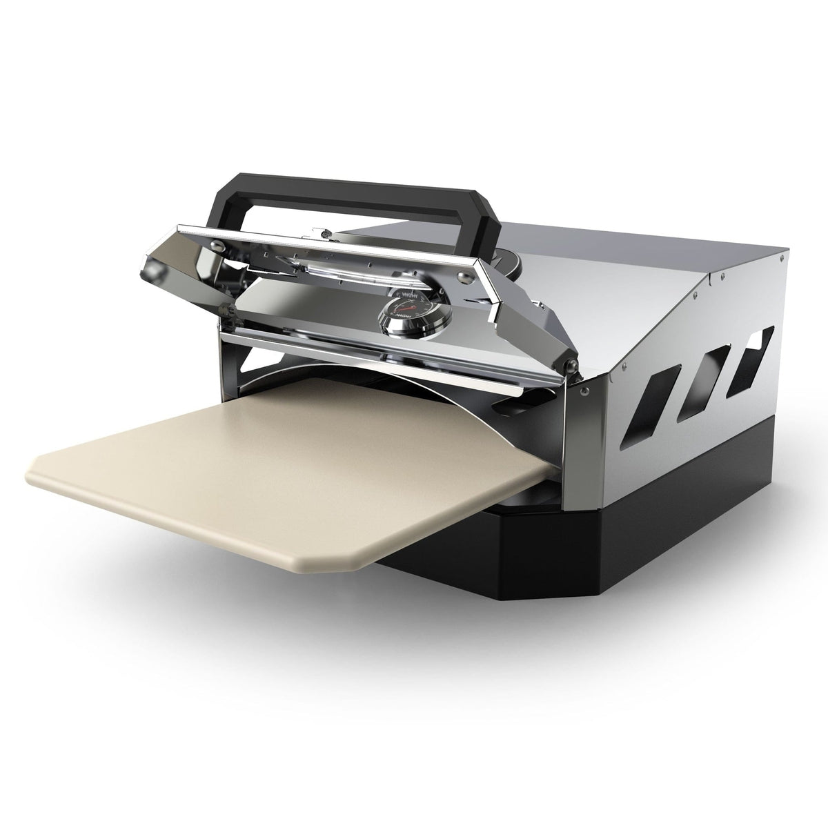 Build your perfect marine cooking experience with Magma's Crossover series modular cook system. The Pizza Top is made from marine-grade, mirror polished stainless steel and cast aluminum base. The non-corrosive, cast aluminum base prevents heat distortion to maintain a perfect fit with the Firebox. Includes a curved inner liner to melt all the delicious pizza toppings and cordelite pizza stone for a crispy crust. The lid includes a thermometer and locks into place for easy transport. This marine pizza oven can reach temperatures of up to 700 degrees - and can quickly cook up a fresh pizza in no time. Never before have you been able to cook up the perfect pizza on board your boat.