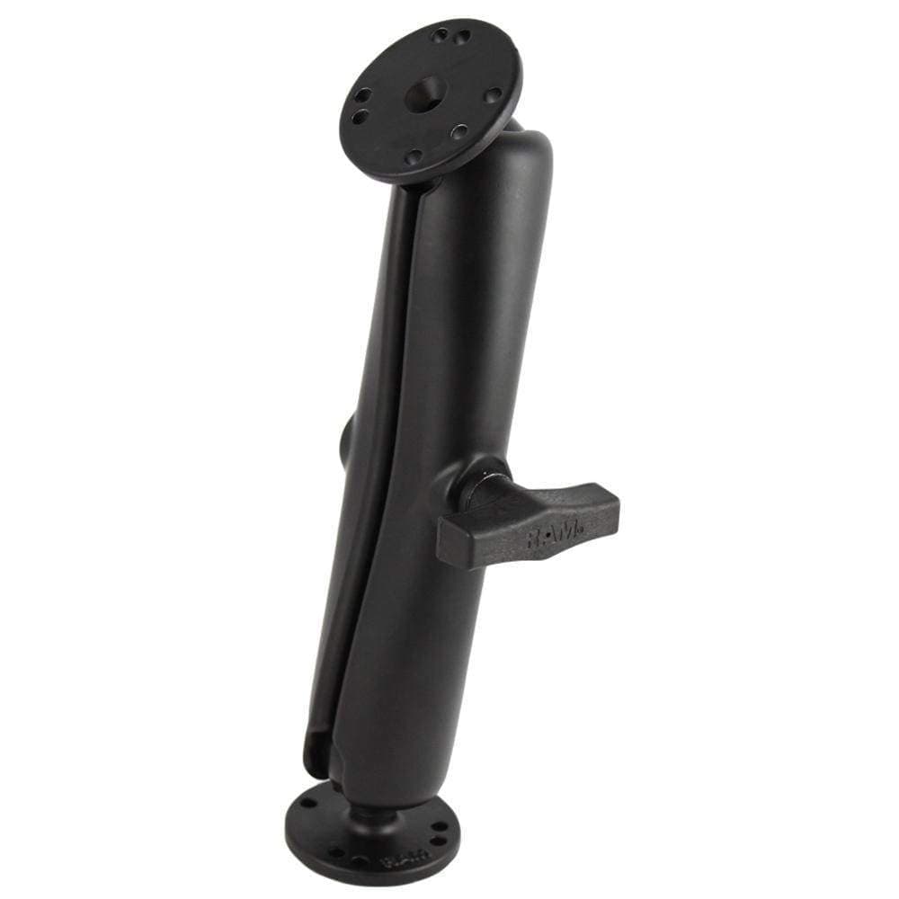 RAM 1.5" Diameter Ball Mount with Long Double Socket Arm & 2 2.5" Round Bases w/AMPs Hole PatternThe RAM-101U-D consists of a long double socket arm and two 2.5" diameter round bases with the universal AMPS hole pattern. Designed into the mount is a 1.5" diameter patented rubber ball and socket system with adjustment points at both socket ends of the arm. Rubber ball and socket technology allows for almost infinite adjustment and perfect viewing angles. High quality materials insure your device is safe, secure, and within easy reach. RAM's patented design also dampens shock and vibration helping to extend the life of your device.