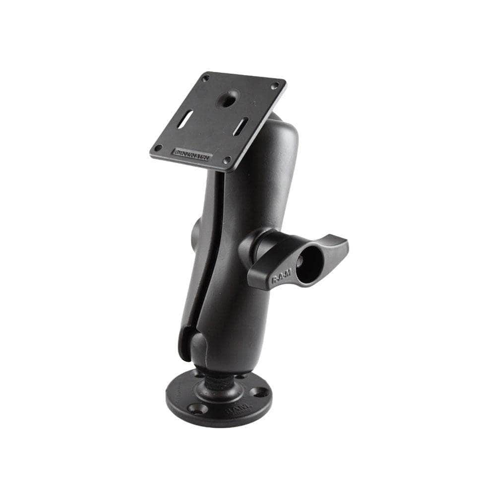The RAM-D-101U-2461 consists of a double socket arm, 2.5" diameter round base with the universal AMPS hole pattern and 3.625" square plate with the VESA hole pattern. The VESA plate contains a 75mm X 75mm hole pattern. Designed into the mount is a 2.25" diameter patented rubber ball and socket system with adjustment points at both socket ends of the arm. Rubber ball and socket technology allows for almost infinite adjustment and perfect viewing angles.Material: