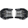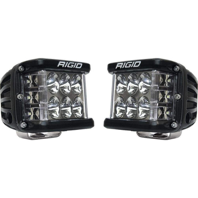 One of RIGID's most versatile, compact lighting solutions just got better with the RIGID D-SS PRO, Dually-Side Shooter Professional Race Output LED pod. Perfect for any application that requires a wide spread beam, including A-Pillars, Fog Lights, and motorcycle applications. The D-SS PRO incorporates powerful optics and recently improved LED technology for greater output with the added benefit of additional LEDs aimed to the side for a much broader beam. The D-SS PRO packs a powerful punch with up to 102% more raw lumens depending on the optics chosen The D-SS PRO fixtures boast up to 120-degrees of horizontal lighting coverage when used in pairs or when used in the single light applications. The main forward-facing LEDs are available with RIGID\'s advanced Spot, Flood, or Driving optics, so there\'s a D-SS PRO lighting solution for nearly any application. The D-SS PRO LED lights are available in pairs with three side-shooting LEDs on one side of each fixture, or in single applications with a pair of side-shooting LEDs on both sides of the fixture. Only RIGID provides a broad, powerful lighting solution in such a compact package.