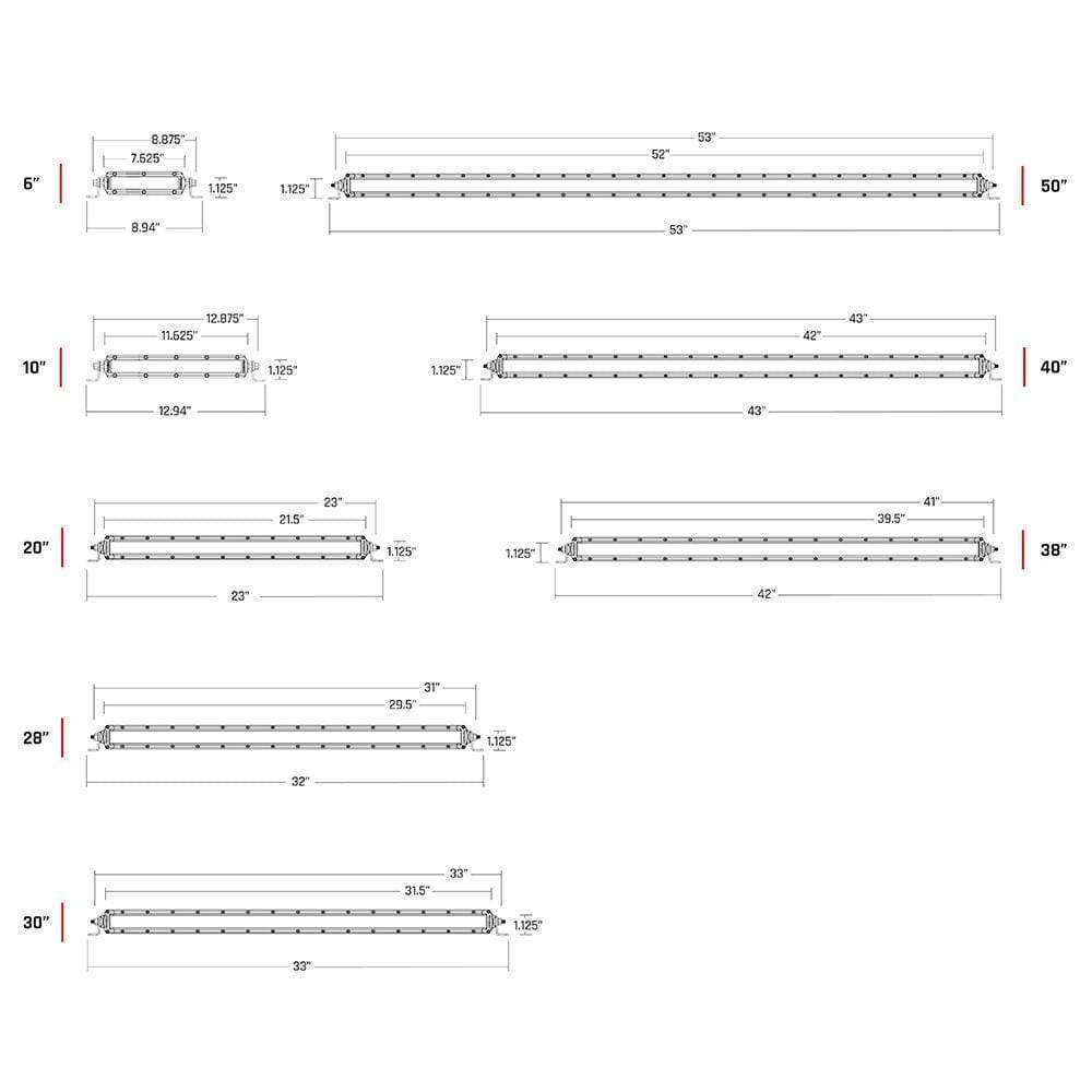 The SR-Series PRO LED Light Bars provide a sleek, low profile lighting solution that measures less than 2" tall. Thanks to improved LED technology, the SR-Series PRO now offers more light output than ever before with up to 111% more raw lumens. As the name implies, the SR-Series PRO utilizes a single row of LEDs with your choice of Hybrid or Specter optics in a variety of beam patterns. Ideal for applications where space is limited, the SR-Series PRO is a powerful light source designed to project light at extreme distances while consuming very little power. Available in a wide range of lengths and configurations, these LED light bars can be used on virtually any application, whether it's an off-road vehicle, industrial, agricultural, or marine.RIGID's SR-Series PRO lights utilize extruded aluminum housings and are available with either a black or white durable powder coated finish. Along with improved LEDs for more output, the SR-Series PRO benefits from new branding and blacked-out circuit boards for a more refined look. They feature the same superior build quality as the rest of RIGID's lighting products, providing reliable and efficient lighting on demand.
