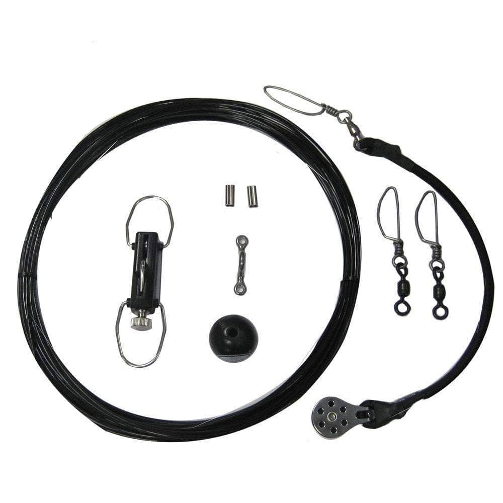 Center Rigging Kit w/Klickers - Black MonoComplete rigging packages that allow you to run One (1) lines on each rigger. this kit includes (1) exclusive Rupp single pulley shock cord, 45ft of BLACK MONO halyard lines, (1) Rupp KLICKER release clip, (1) Nylon ball stop, (1) Strap Eyes, (2) Heavy Snap Swivels, (2) Crimps-Nickel.