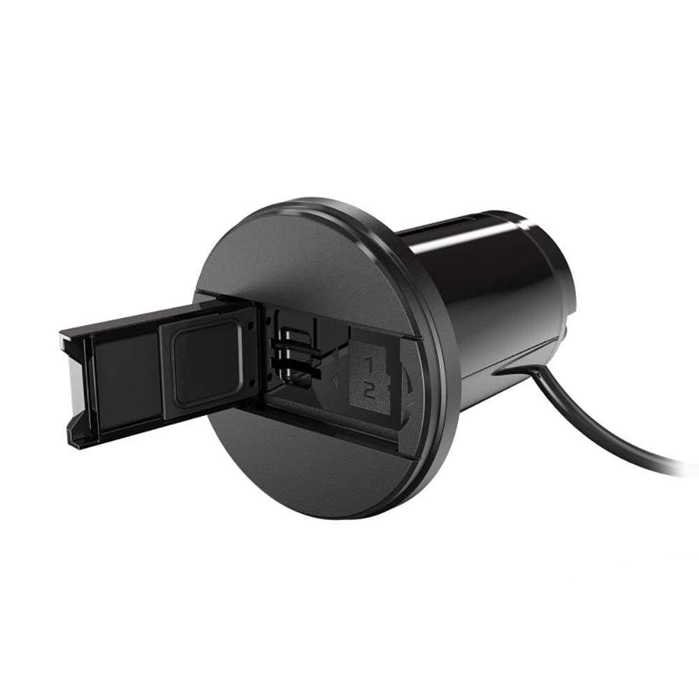 The MI10 Chart Card Reader provides dual microSD card slots for use with Simrad NSO evo2 marine processors. This easy-to-install, waterproof card reader can be mounted in easy reach, eliminating the need to physically access your system’s “black box” processor when installing or removing chart cards.