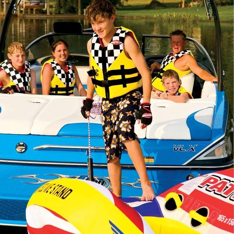 Fingerless towable gloves with padded palm patch allow riders to achieve a secure grip, while helping to alleviate muscle fatigue, blisters, and callouses. Constructed with neoprene, so they are lightweight, soft, and flexible. One size fits most riders.Water Sports: Gloves