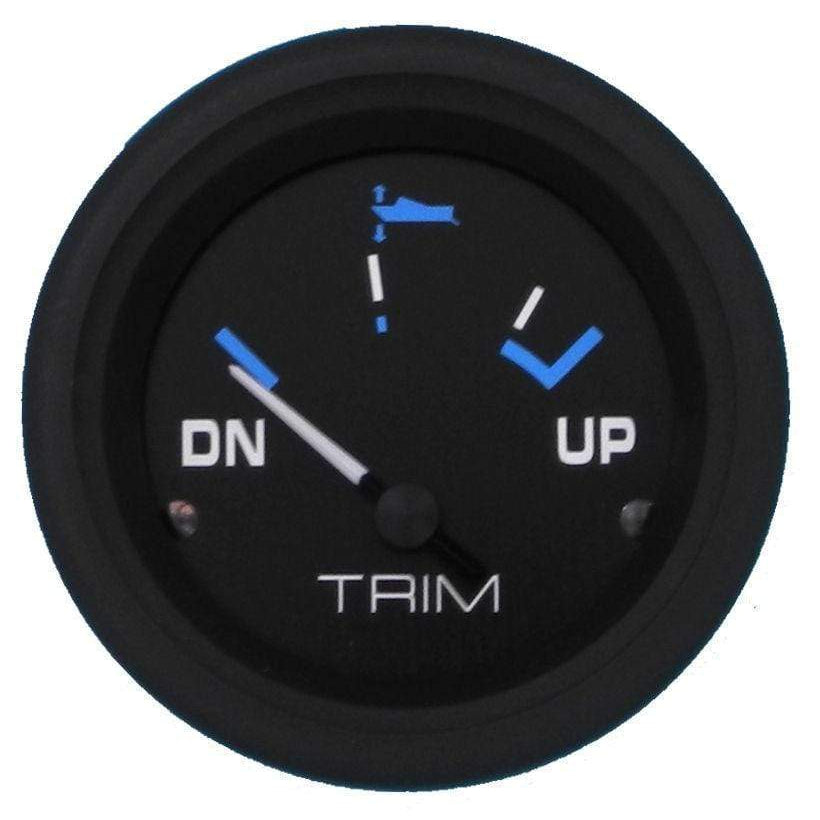 Eclipse trim gauge from Sierra is constructed with quality, marine-grade materials for optimal performance and reliability. Features a scratch-resistant domed glass lens. Perimeter lighting for excellent readability at night. Dial range is DOWN to UP.
