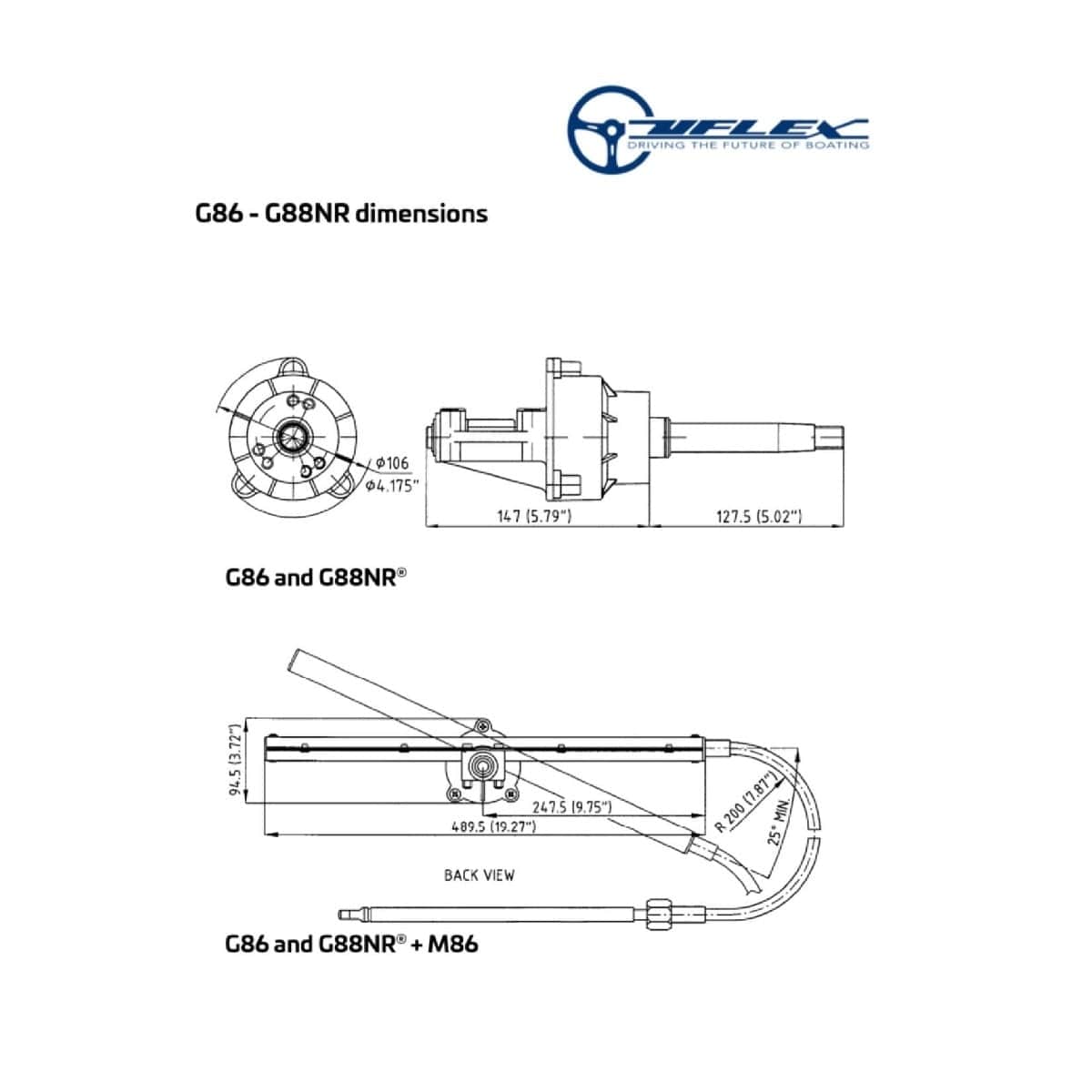 Easy and safe steering: patented non reversible G88NR helm eliminates the continuous load on the operator caused by the propeller torque. Maximum allowable steering wheel diameter: 16.5"; (420 mm) Minimum steering cable bend radius: 7.9" (200 mm)G86 and G88 NR steering systems are not to be used on boats equipped with engines that exceed the maximum horsepower rating of the boat.