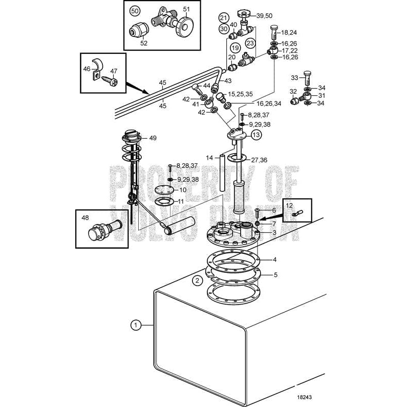 Volvo Penta Exploded view / schematic Fuel Tank 40L, with ConnectionsNormalized SKU: 951189