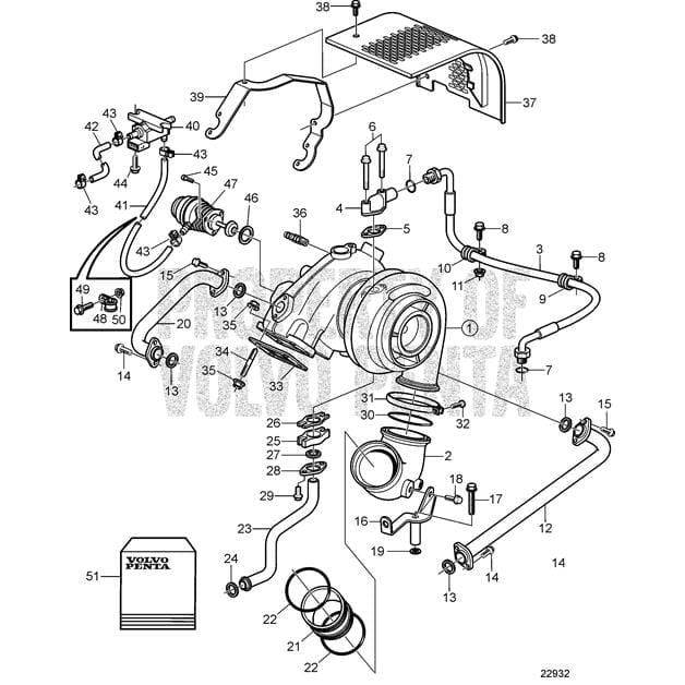 Volvo Penta Exploded view / schematic TurbochargerNormalized SKU: 3840357