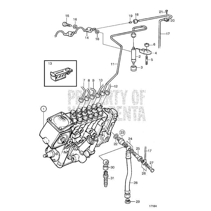Volvo Penta Exploded view / schematic Injectors, Pressure Pipes and Leak-off Line