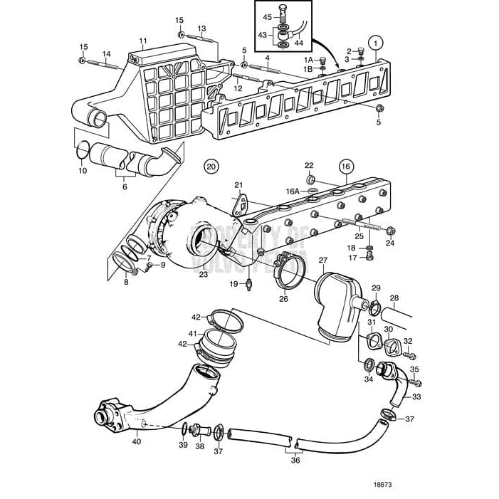 Volvo Penta Exploded view / schematic Induction and Exhaust Manifold: ANormalized SKU: 3581406