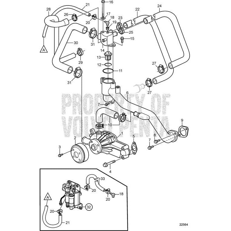 Volvo Penta Exploded view / schematic Circulation Pump and Thermostat